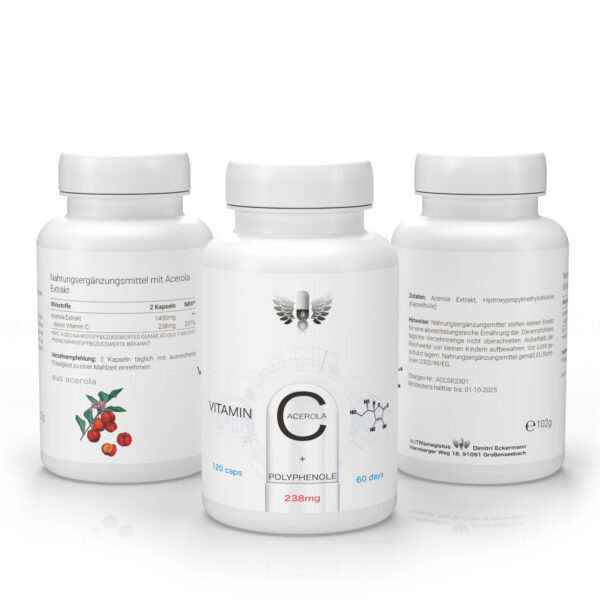 Vitamin C aus Acerola-Extrakt liefert natürliches Vitamin C aus der Acerolakirsche. Es trägt zu einer normalen Funktion des Immunsystems bei und unterstützt den Schutz der Zellen vor oxidativem Stress. Zudem leistet Vitamin C einen Beitrag zur Verringerung von Müdigkeit und Ermüdung und fördert eine normale Kollagenbildung für Haut, Knochen und Bindegewebe.