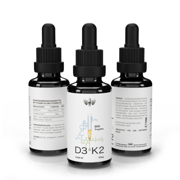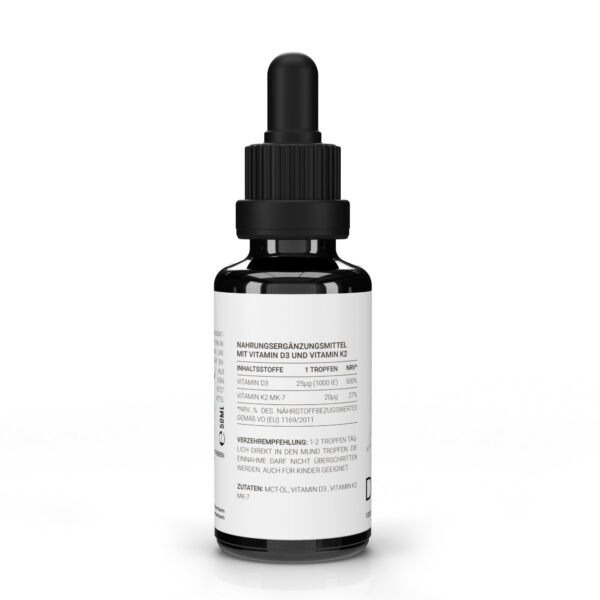 Ein flüssiges Nahrungsergänzungsmittel mit Vitamin D3 (Cholecalciferol) und Vitamin K2 (MK-7, all-trans), zur täglichen Unterstützung von Immunfunktion, Knochenstärke und Herz-Kreislauf-Gesundheit.