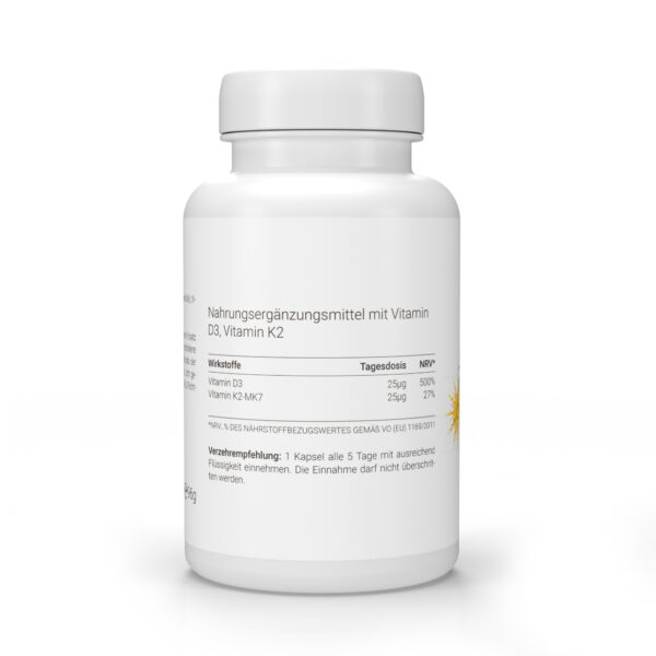 Ein smart kombiniertes Nahrungsergänzungsmittel in Kapselform zur täglichen Versorgung mit Vitamin D3, Vitamin K2 und Magnesium – für mehr Energie, innere Balance und körperliche Stärke.