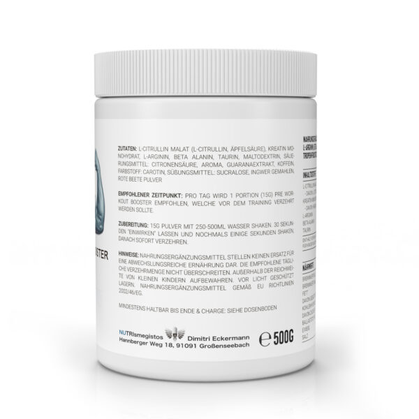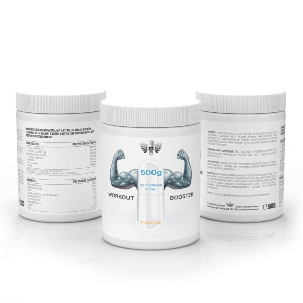Unser WorkoutBooster ist ein leistungsstarker Pre-Workout-Mix für alle, die mehr aus ihrem Training herausholen wollen. Die hochwirksame Formel kombiniert sechs bewährte Wirkstoffe – Arginin, Citrullin, Kreatinmonohydrat, Beta-Alanin, Taurin und Koffein – für maximale Power, Fokus und Muskelpump.
